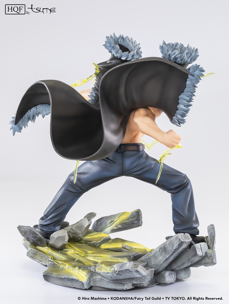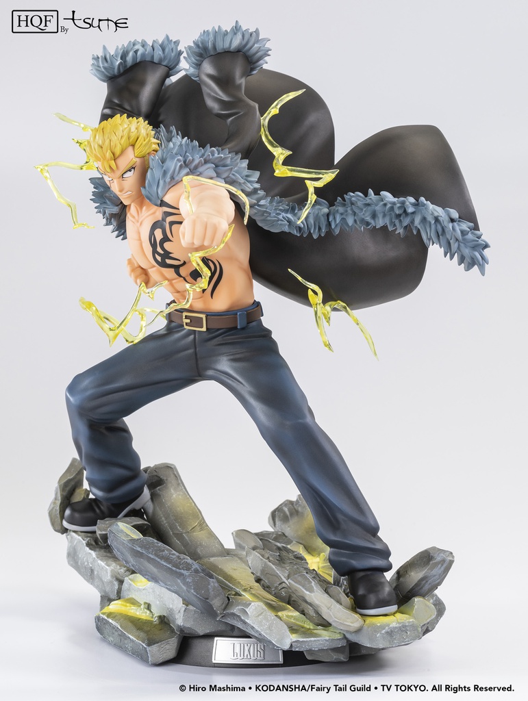 This HQF By Tsume figurine from Laxus Dreyar, an S-Class mage among the 5 most powerful in the Fairy Tail Guild, depicts him in the midst of his fight against Tempesta the Immortal, a demon from the Dark Guild Tartaros.